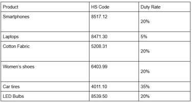 Duty Rates Differ by Product Type