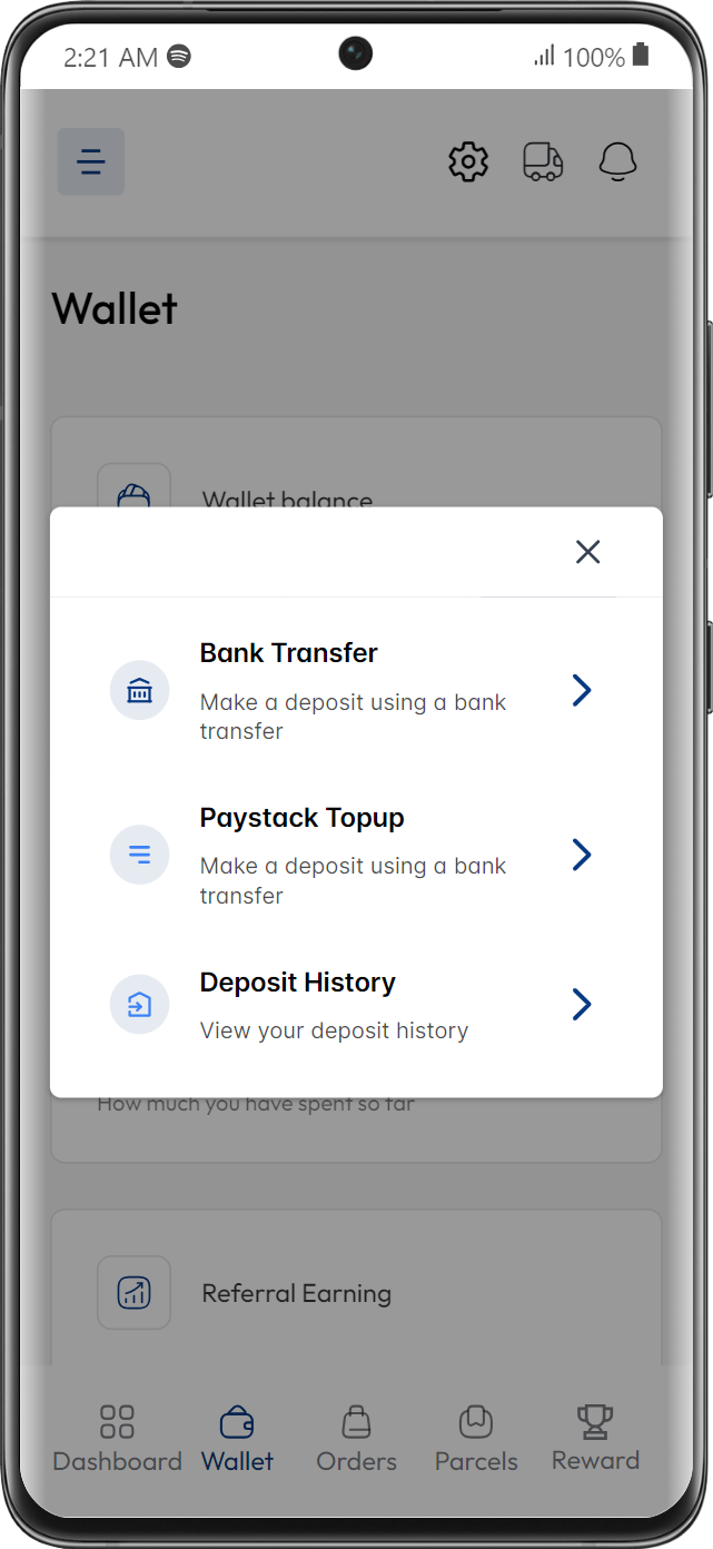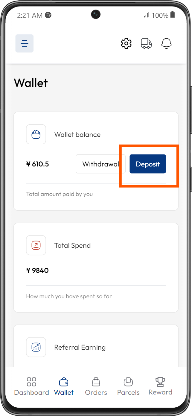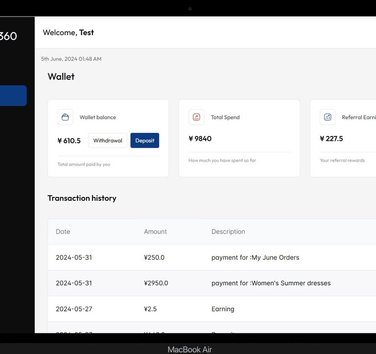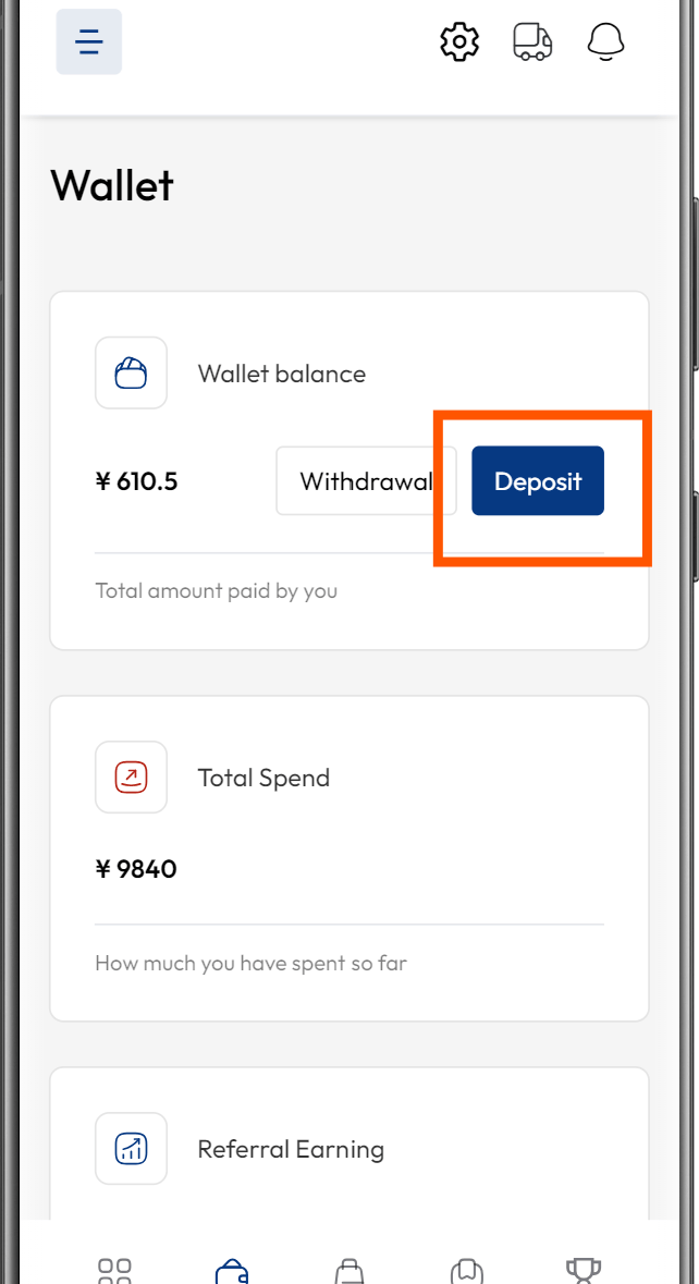 Transaction History: This section contains a detailed record of all your financial transactions within the app. This history includes deposits, withdrawals, order payments, and your referral earnings.