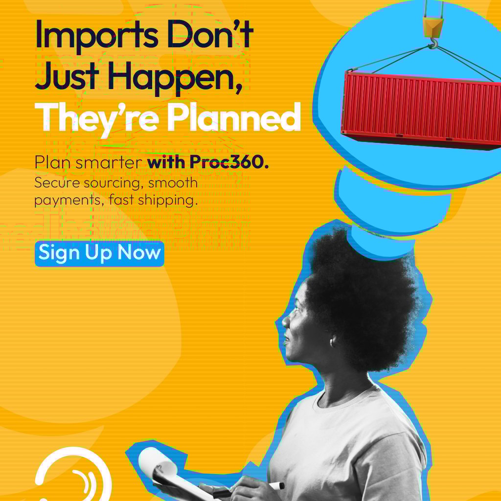 Example 1: Consolidation Savings: Chioma imported from 4 suppliers monthly, paying ₦150,000 in shipping each time (₦600,000/month). After consolidating through Proc360, she combined all orders into one shipment, paying just ₦350,000/month—saving ₦250,000 monthly.