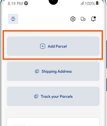Add Your Parcels: Tap the big button that says "Add Parcels."