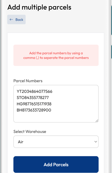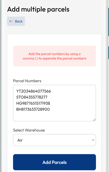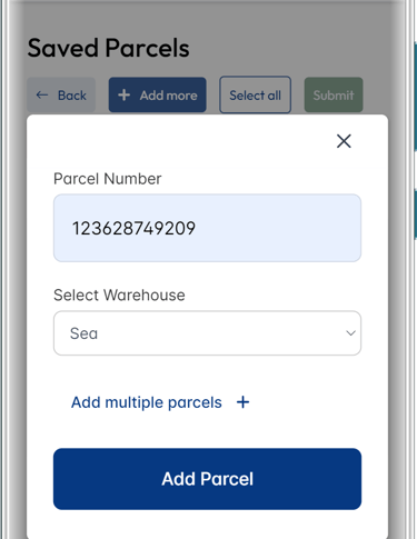 You can add more parcels by clicking the 'Add more' button.