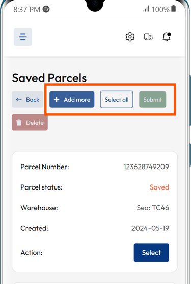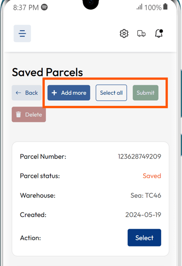 Once you've added all your parcels, select the parcels you want to confirm and submit them for review.