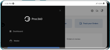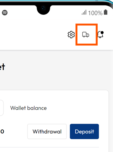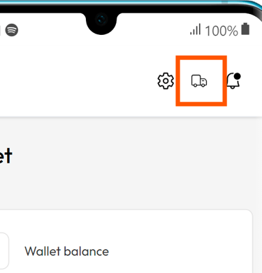 Locate the Truck Icon: On any page within the Proc360 app, look for the truck icon in the upper right corner of the screen.