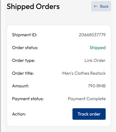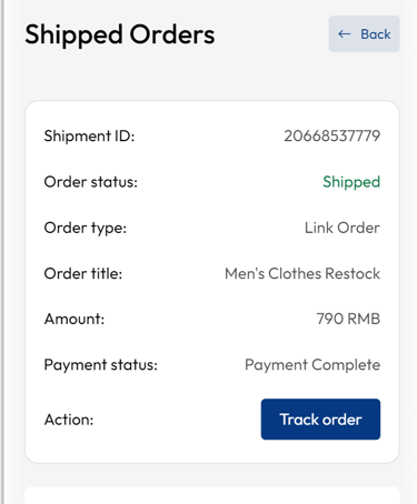 Order ID vs. Shipment ID: Make sure you use the correct ID for what you want to track. Your Order ID is for tracking the progress within China, while the Shipment ID is for tracking the international shipment.