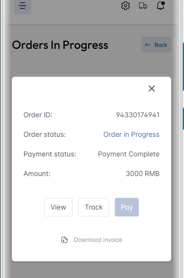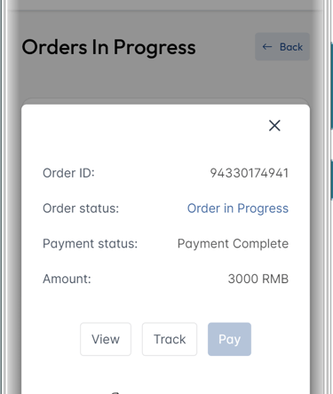 Tracking Order Progress: Go to the 'Order in Progress' section. Locate the order you want to track, Click the 'View Order' button and Tap "Track"