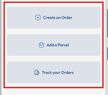 Proc360 dashboard has three quick action buttons that lets you create and order or add a parcel or track an order right from your dashboard.
