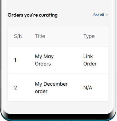 Clicking on a specific order within the table will take you to a more detailed view of that order, allowing you to track its progress, pay for an order, apply for shipment, or see additional information.