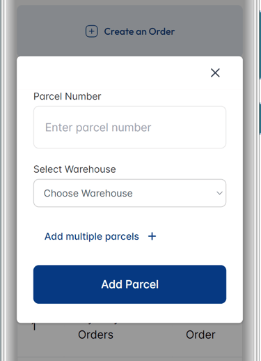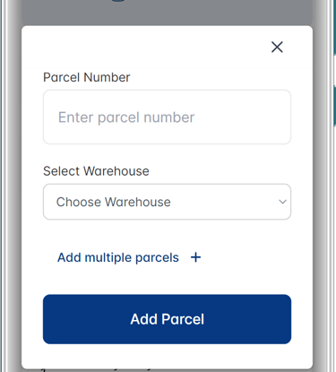 Once you click "Add Parcel," a new screen will appear. Here, you'll be prompted to enter the unique tracking ID (Parcel Number) assigned to your parcel by the original shipping courier. You can get these parcel codes either from your supplier or from the shopping site your purchased your items from