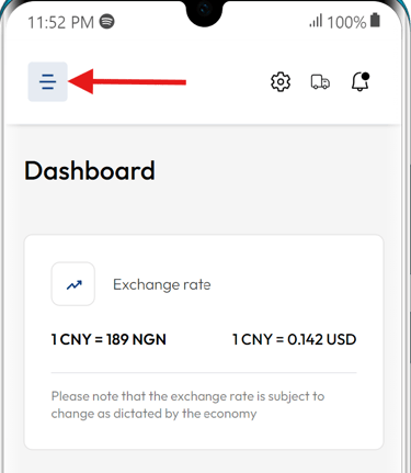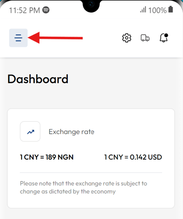 The hamburger menu (see where the red arrow points to) at the very top helps you jump to different sections of the app. Clicking it will show a menu that you can use to navigate to your Wallet, the Orders page, Parcels page and all the other sections on the app.