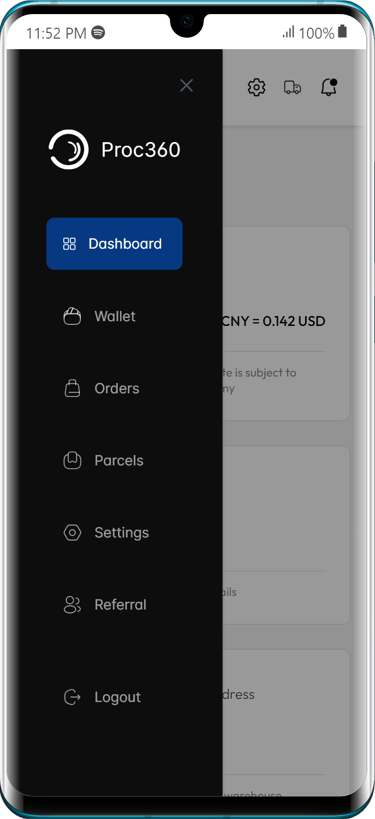 Your Warehouse Address: This is your unique address at Proc360's warehouse in China. Give this address to your suppliers when you make a purchase. If you are buying from a Chinese ecommerce platform(1688, Taobao, Pinduoduo, Tmall, etc), add this address to your profile and any purchase you make will be sent to your proc360 address.