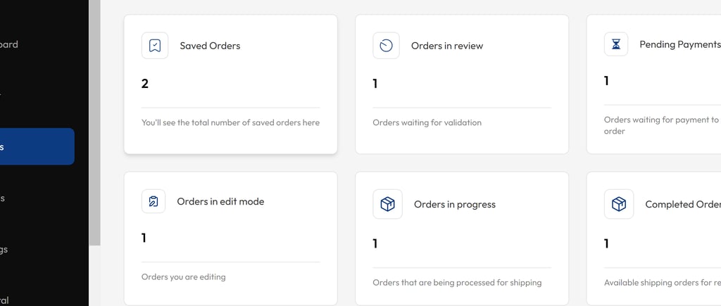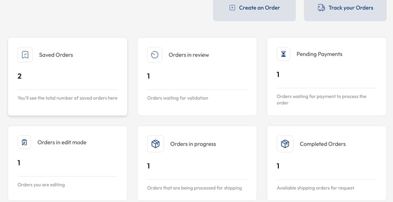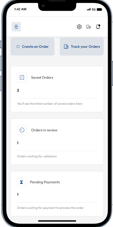 Saved Orders: These are orders you've started creating but haven't submitted yet. You can easily access and modify these drafts.